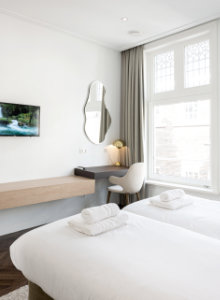 Op de derde etage vind je deze knusse en luxe comfortkamers. Van alle gemakken voorzien, maar met het oorspronkelijke historische karakter van het pand nog goed zichtbaar. De perfecte plek om je terug te trekken na een dag genieten in Haarlem en omstreken, dankzij onder meer de stijlvol ingerichte badkamer met douche en de comfortabele bedden.